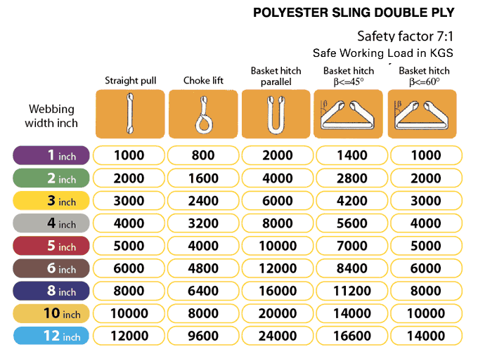 These slings are manufactured with twisted high tenacity polyester yarn,