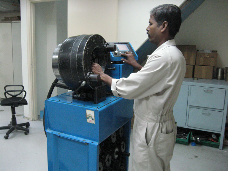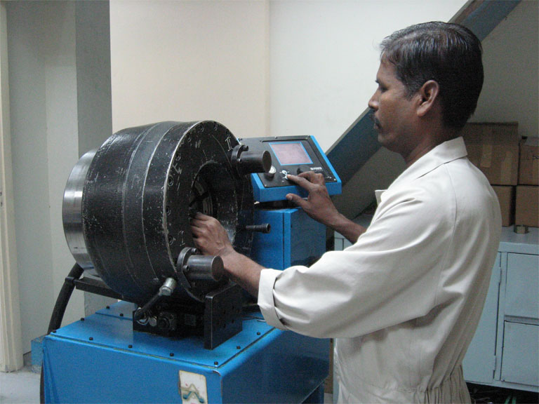 The manufacturing facility includes programmable PLC controlled swaging and hydrostatic test bench imported from Finn Power, UK & Uniflex, Germany respectively. Other machines include Reusable Hose Assembly Machine, Skiving Tools, Split Flange Assembly Tools and Hose Cleaning System for processing hoses upto 2” ID six-wire spiral. Our rigorous inspection and acceptance procedure ensures the very best in raw materials and components. Our life cycle trace ability system provides customers with a full audit trail of technical integrity for each component or assembly purchased from BHATIA BROTHERS. Each component or assembly sold is visibly tagged with a unique identity and tracked through a central database maintained by BHATIA BROTHERS.