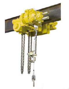 The standard pneumatic hoist package includes vane or piston motors and brakes with modulating valves for infinitely variable hoist motion. Single speed trolley or tractor motion is standard using vane motors and our standard worm gear reducers. Standard controls include a two or four lever pendant. Features • Spark Resistance Models • Corrision Resistant Options download PDF for more details