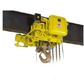 Primarily designed for those applications where headroom is limited, Chester Electric Chain Hoists provide years of trouble free operation in a variety of Class III applications. The units are equipped with worm drive gear reducers, case hardened load chain and are available in capacities from 1 through 25 tons. Choices of lug mounted, push/pull, hand geared or motorized trolley drives are available to meet a variety of applications. Features • Hazardous Duty / Explosion Proof Models • Spark Resistance Models • Corrision Resistant Options