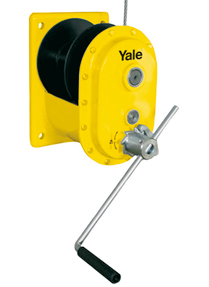 Ratchet lever hoist model Yalehandy Capacity 250 - 500 kg This hoist is the smallest and lightest Yale ratchet lever hoist for professional low weight applications. Features Electric wire rope winch model RPE Pulling force 250 - 1000 daN The robust and extremely compact, practical cube design and universal rope lead-offs allow individual applications in almost any position. Features Optional Manual wire rope winch with spur gear drive model MWS Pulling force 250 - 1000 daN For the operation there where is no electricity or an increase of dirt Features Optional Manual wire rope winch with worm gear drive model MWW Capacities 250 - 5000 kg Features •. Two rope directions for operations from different positions • Two lifting speeds by means of different setting of the crank handle for capacities of 2.000 kg and above. • Automatic load pressure brake for safe holding and extremely sensitive lowering of the load