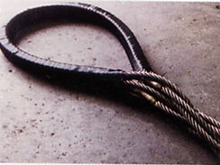 GATOR-LAID® WIRE ROPE SLING This is identical to the Gator-Max® sling with the parallel eyes except it has metal sleeves for the splice connection. This is the product when a big lift but shorter sling is required. It also has twelve parts of wire rope in the loop. The Gator-Flex® and Gator-Laid® products were developed in conjunction with the off-shore oil industry to provide the worlds best heavy lift wire rope slings. D/d ratios are the same as for the Gator-Max® sling