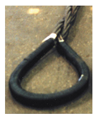 GATOR-MAX™ SLING This is the strongest multi-part sling with great flexibility. It will develop its full strength on small pins with a D/d ratio of 1/1 where D is the pin and d is the sling body. (4/1 D/d when comparing the pin to the component parts.) For heavy lifting work this is the most efficient wire rope sling that meets all of the standards. The eyes have the wire ropes (12) laid in parallel so that there is no cross over and then they are wrapped with heavy duty material to keep them in position. It is an excellent choice when you have to use small pins. This sling was developed to meet conditions specified by the US Navy and the Wire Rope Technical Board Sling Manual.